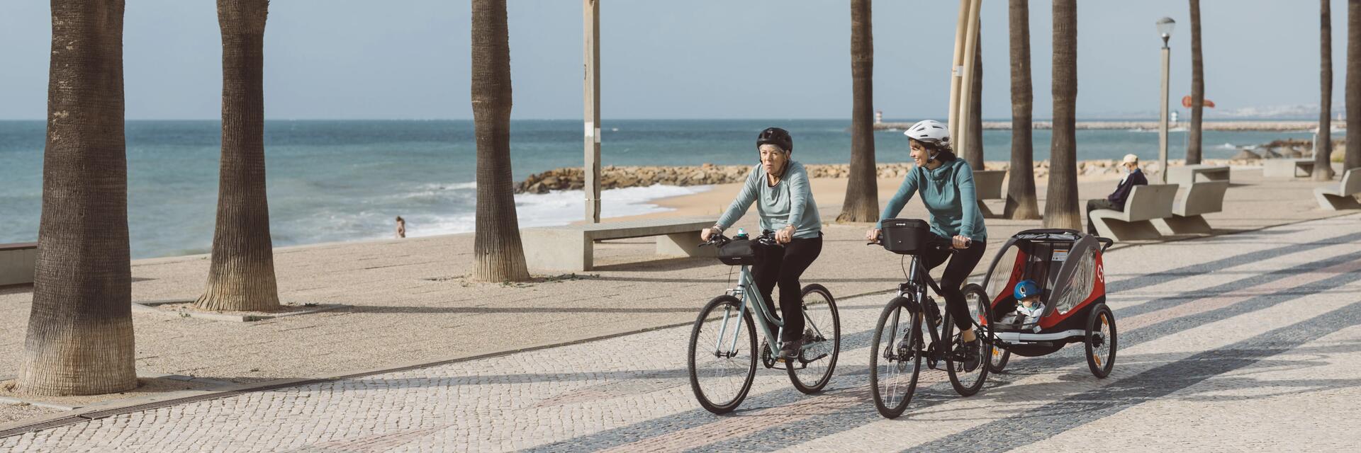 Idéale pour les « longues randonnées » en campagne, la remorque est un peu moins pratique en ville : elle rallonge le gabarit du vélo et dépasse de chaque côté.